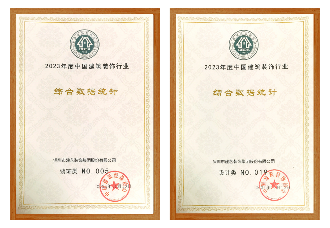 會上,中國建筑裝飾協會權威發布《2023年度中國建筑裝飾協會行業綜合數據統計結果》,建藝集團憑借行業領域內過硬的專業實力和優質的項目工程,自2011年以來連續13年入圍中國建筑裝飾行業百強前十名,今年繼續榮登裝飾類榜單第5名、設計類榜單晉升至第19名。