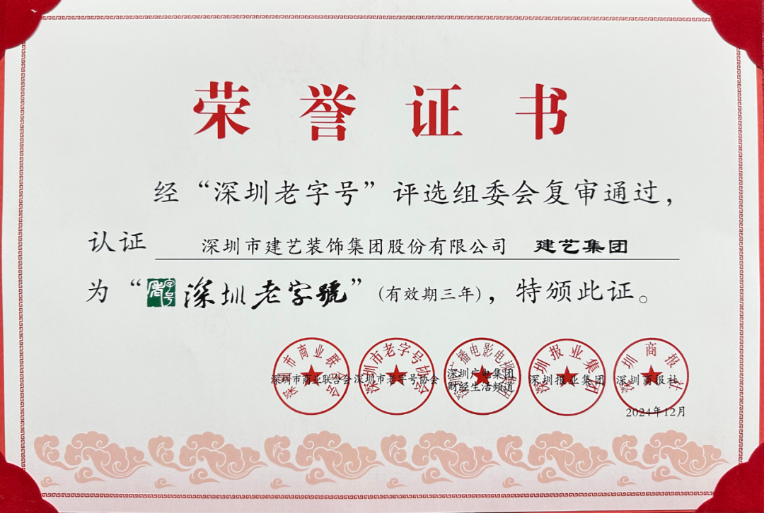 【重磅】建藝集團連續三次獲評“深圳老字號”