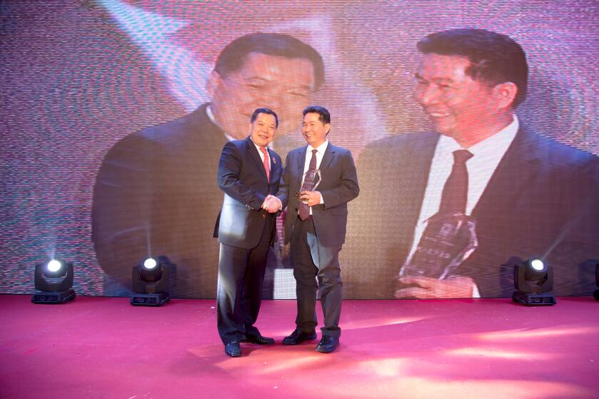 建藝集團監(jiān)事會主席兼工程管理中心總監(jiān)陳景輝(右一)榮獲二十年功勛人物獎