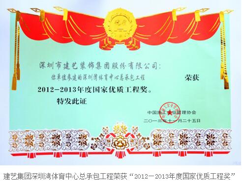 建藝集團(tuán)深圳灣體育中心總承包工程喜獲“2012-2013年度國(guó)家優(yōu)質(zhì)工程獎(jiǎng)”