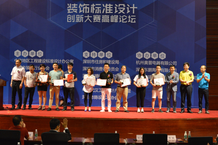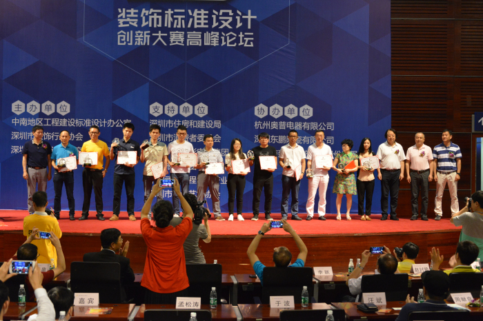 在“中南標2016裝飾標準設計創(chuàng)新大賽”頒獎環(huán)節(jié),建藝集團不負眾望,斬獲多項獎項,包括:工藝創(chuàng)新金獎1項(獲獎人:建藝集團工程總監(jiān)韓佛,獲獎作品:《雙層輕鋼龍骨隔音墻施工工法》)、設計創(chuàng)新銀獎2項(獲獎人:建藝集團設計研究院楊圣滔、劉小飛)、材料創(chuàng)新銀獎1項(獲獎單位:深圳市富山厚土建材有限公司),另有多人獲得設計創(chuàng)新銅獎等。