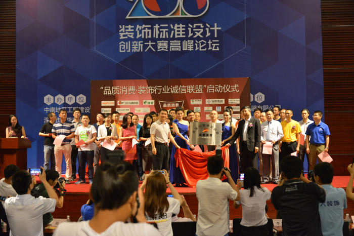 為響應深圳市“質量強市”的戰(zhàn)略方針,打造“深圳品質”、踐行“深圳質量”,營造“健康、良性、綠色”的深圳裝飾生態(tài)圈,引導消費者選擇“品質優(yōu)良、服務規(guī)范”的優(yōu)秀企業(yè),在第十二屆中國(深圳)國際文化產業(yè)博覽交易會舉辦之際,5月14日,被譽為“裝飾行業(yè)技術盛宴”同時也是文博會重要活動之一的“中南標2016裝飾標準設計創(chuàng)新大賽高峰論壇”在深圳會展中心簕杜鵑廳隆重舉行。本次活動由深圳市住房與建設局、深圳市消費者委員會、深圳市裝飾行業(yè)協(xié)會、深圳新聞網聯(lián)合舉辦,同時舉行的還有“品質消費——裝飾行業(yè)誠信聯(lián)盟”啟動儀式。來自政府、協(xié)會、媒體以及裝飾和上下游行業(yè)企業(yè)代表、設計師等600余人出席了本次活動。