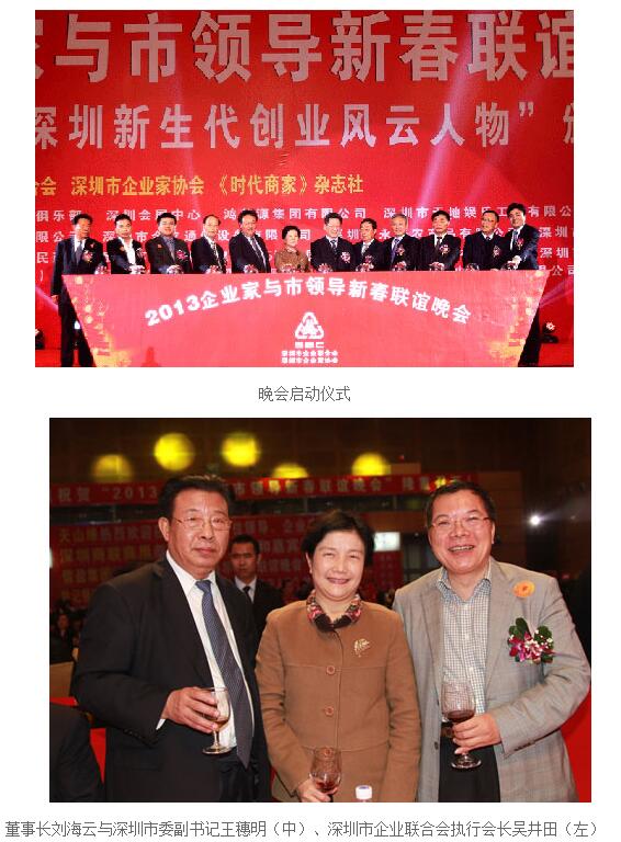 2012年12月18日,由深圳市企業聯合會/企業家協會和《時代商家》雜志社舉辦的每年一度深圳企業家自己的“春晚”——2013企業家與市領導新春聯誼晚會于深圳市會展中心隆重召開。