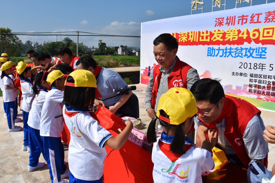 2018年,劉海云董事長等走進(jìn)河源和平,為老區(qū)人民送溫暖