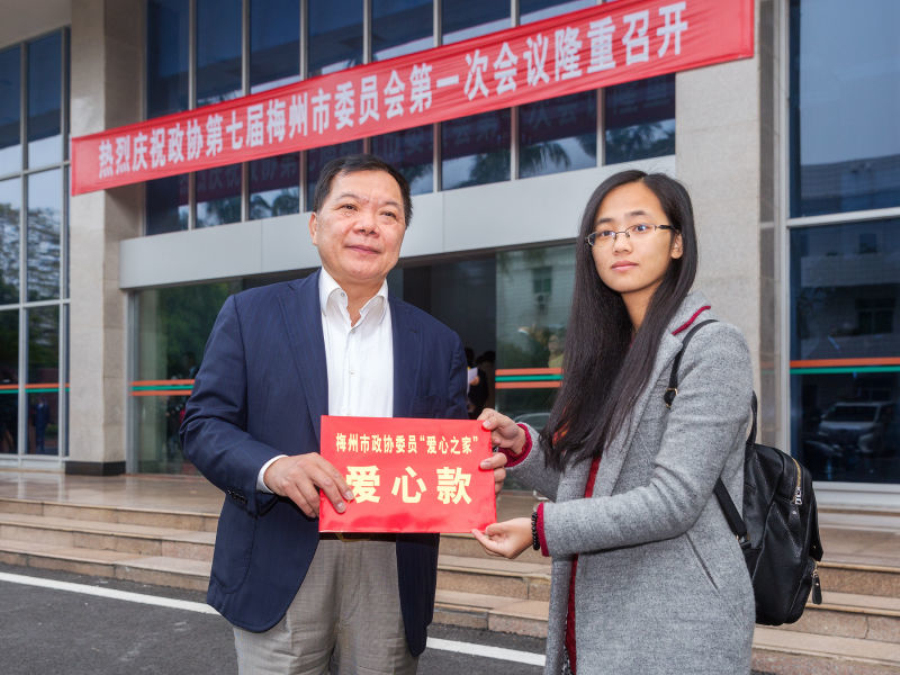 2017年,劉海云代表梅州市“政協(xié)委員愛心之家”委托《梅州日報》向當(dāng)?shù)乩щy群眾轉(zhuǎn)交愛心款