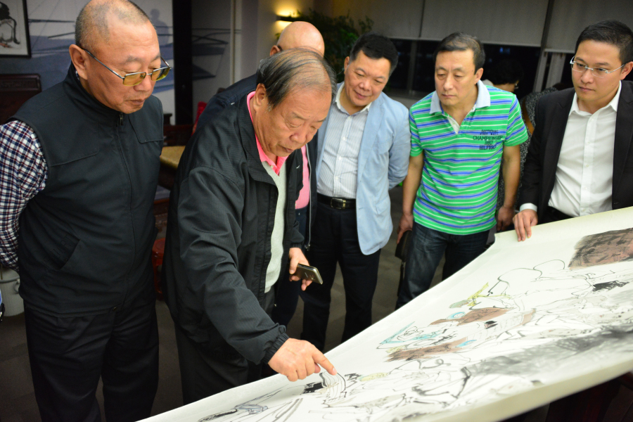 老領導們在觀摩劉海云董事長收藏的書畫作品