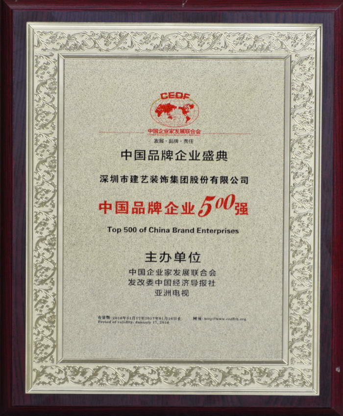 建藝集團榮獲的“中國品牌企業500強”獎牌
