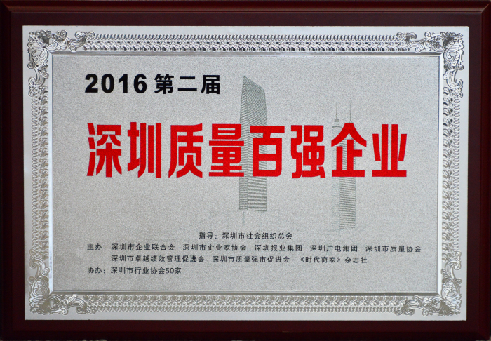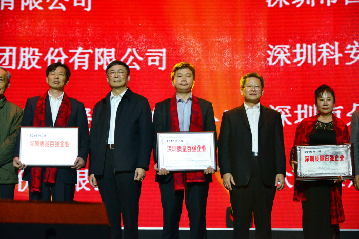 建藝集團喜獲“2016第二屆深圳質量百強企業”榮譽獎牌