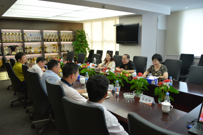 雙方領導在建藝集團會議室熱情交談