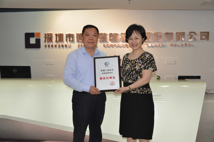7月14日上午,深圳工業總會執行主席王肇文、秘書長吳沂燭一行蒞臨建藝集團,集團董事長劉海云等高管熱烈歡迎王主席等人的到訪,并在會議室同王主席一行進行了親切交談。期間,王主席及吳秘書長還分別向劉海云董事長頒發了“深圳工業總會第四屆理事會副會長”榮譽證書及“深圳工業總會第四屆理事會副會長單位”榮譽獎牌。建藝集團副總裁劉慶云、副總裁兼董事會秘書高仲華、副總裁趙紂瑜、監事會主席陳景輝等高管共同出席了會議。