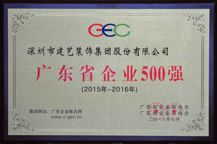 建藝集團(tuán)榮獲的“廣東省企業(yè)500強(qiáng)”獎牌
