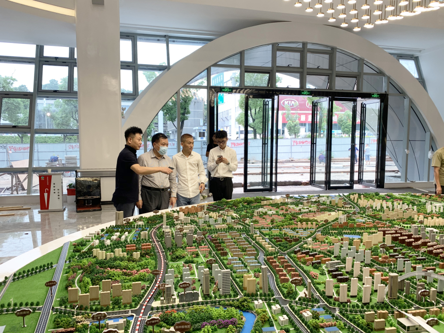 隨后,在李衛(wèi)鋒總監(jiān)等的陪同下,劉海云董事長來到五江廣場營招中心,實地聽取介紹,了解五江城市商業(yè)廣場運作與營銷情況,并就建藝施工要點與亮點進行了解。
