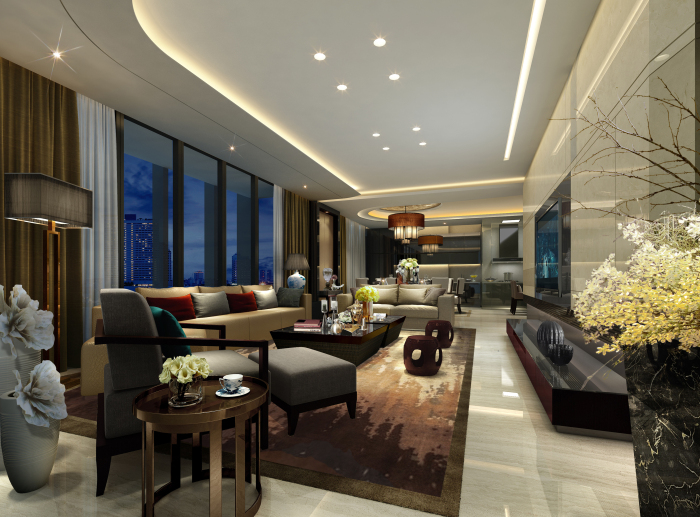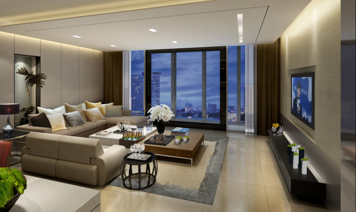 建藝集團獲獎作品《釜山LCT海云臺樣板房》主客廳效果圖