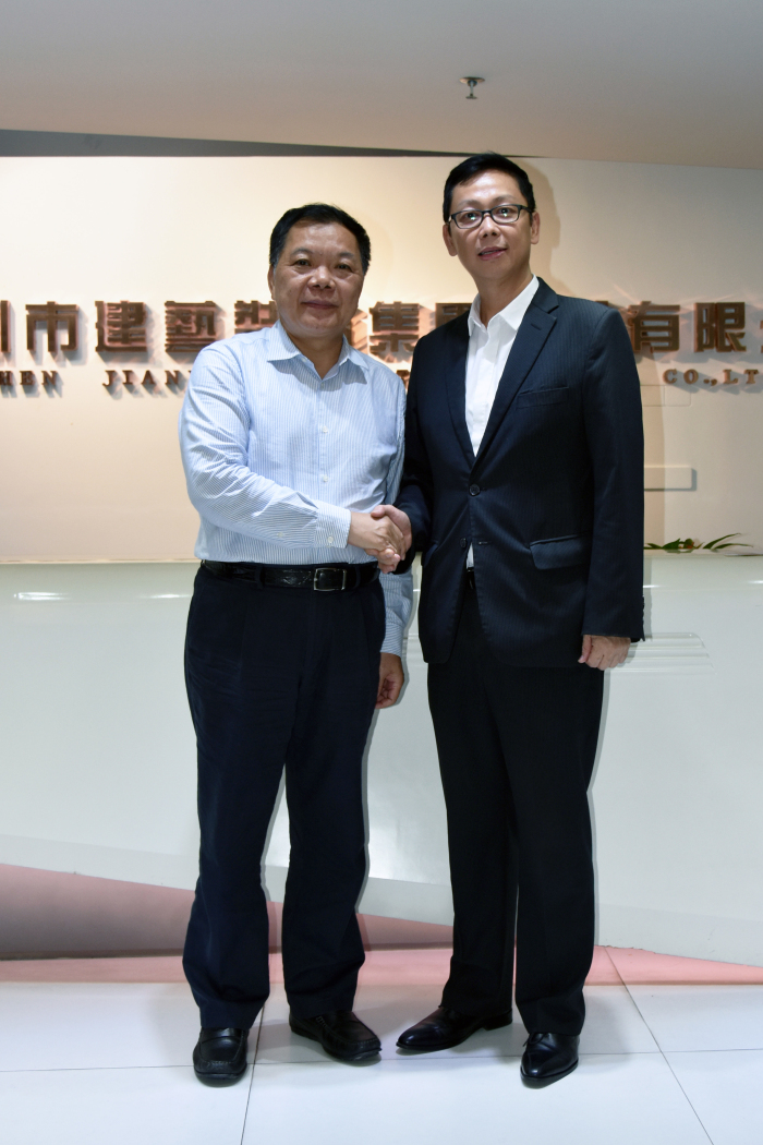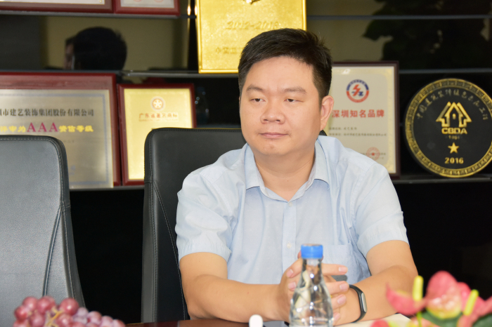 劉海云董事長代表建藝集團對戴德興秘書長一行到訪表示歡迎,并簡要地介紹了建藝集團的發展情況,他說:“建藝集團2016年上市后,積極加快企業多元化發展步伐。去年,我隨廣東省委副書記馬興瑞應邀赴吉隆坡參加‘中國(深圳)-馬來西亞(吉隆坡)經貿合作交流會’,響應國家‘一帶一路’號召、積極‘走出去’的發展舉措,目前已在境外設立分支機構開展業務和投資項目。按照‘主營裝飾設計+金融資本+實體資源’的多元化戰略發展方向,積極調整產業布局,以更快的速度,使建藝的產值、品牌、資產、效益都進入規模化發展階段,為深圳企業壯大發展規模、勇攀發展新高做出積極表率。”