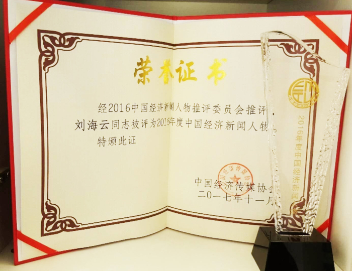 劉海云董事長榮膺“2016年度中國經濟新聞人物”