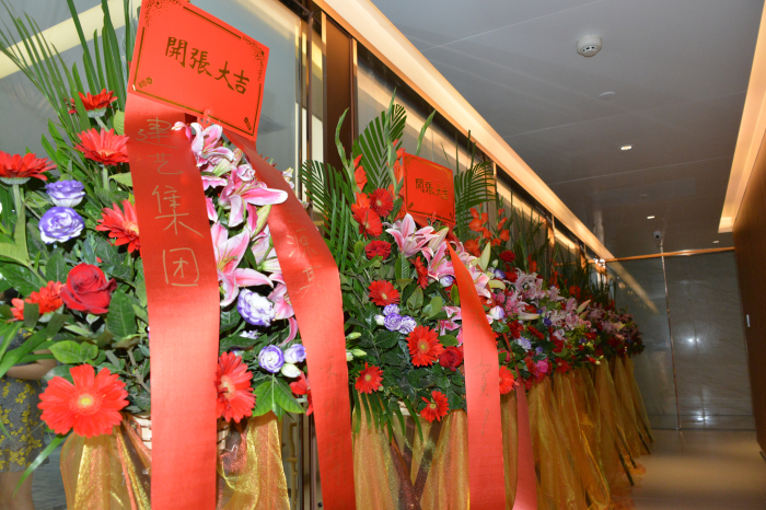 建藝集團(tuán)、建藝控股董事會(huì)主席劉海云與潘總在開業(yè)典禮上合影