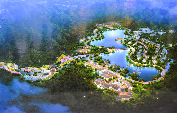 森硒湖莊園項目鳥瞰效果圖(夜景)
