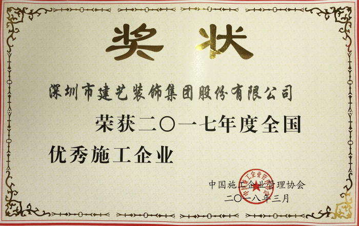 建藝集團榮獲2017年度“全國優秀施工企業”