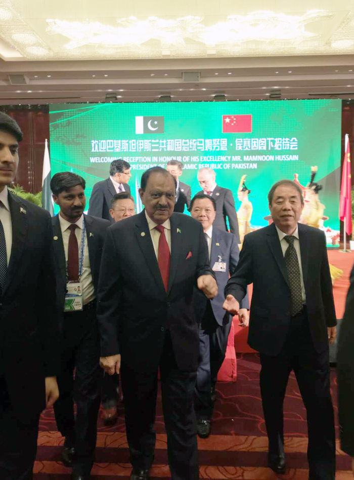 在招待會上,馬姆努恩?侯賽因總統高度肯定了巴中關系,他指出:“世界上沒有任何國家比巴基斯坦更愿意中國富足強盛,巴中兩國友誼世代相傳,巴中友誼萬歲!”