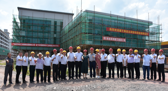 朱志勇副市長等領導與劉海云董事長及建藝集團高管團隊在活動中心前合影