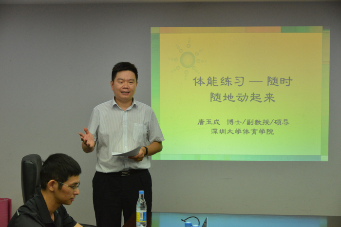 本次培訓的主題為“隨時隨地動起來——職場OL病與健身方式”,由深圳市總工會資深培訓師、深圳大學體育學院副教授、國家級健身指導員唐玉成博士擔任主講。