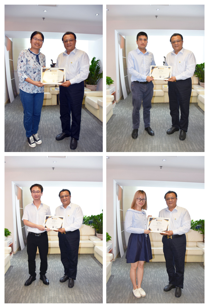 最后,阮總向“建藝之星”們頒發了榮譽證書并與大家合影留念。他還表示,歡迎大家在今后有任何問題都能夠及時反饋給高層,讓集團在第一時間聽到基層的聲音,了解基層的需求,解決基層所面臨的突出問題。大家上下齊心,共同推進建藝這艘巨艦破浪前行。
