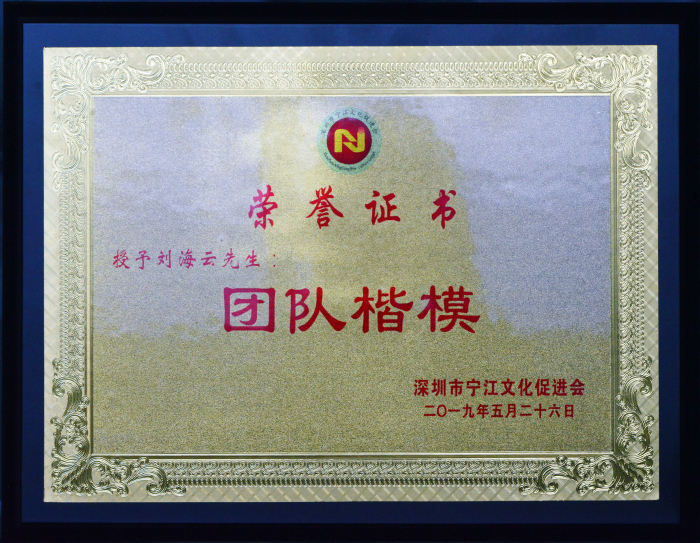 劉海云董事長榮獲的“團隊楷模”榮譽獎牌