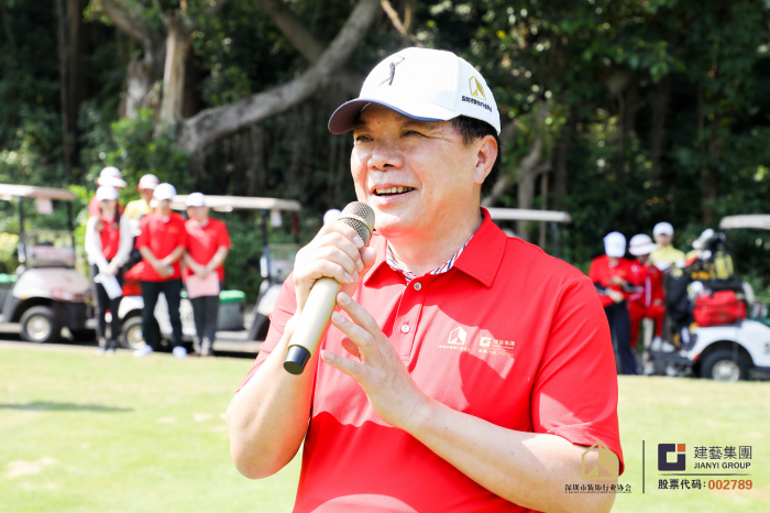 建藝集團董事長兼總裁劉海云致歡迎辭。他對各位領導、嘉賓、企業家朋友們的到來表示熱烈歡迎,并對一直以來支持、關心、推動建藝發展的深圳市裝飾行業協會以及行業同仁們表示了衷心感謝。他表示,作為深圳裝飾大家庭中的一員,建藝集團未來會更加積極響應協會的號召,以身作則,團結聯絡全行業各企業,增進友誼,共謀發展,為同仁交流以及行業發展作出更多貢獻。最后,他預祝參賽的企業家朋友們盡情揮桿,打出好成績,賽出高水平,取得好名次,并祝福深圳市裝飾行業未來蓬勃興旺,宏圖大展!