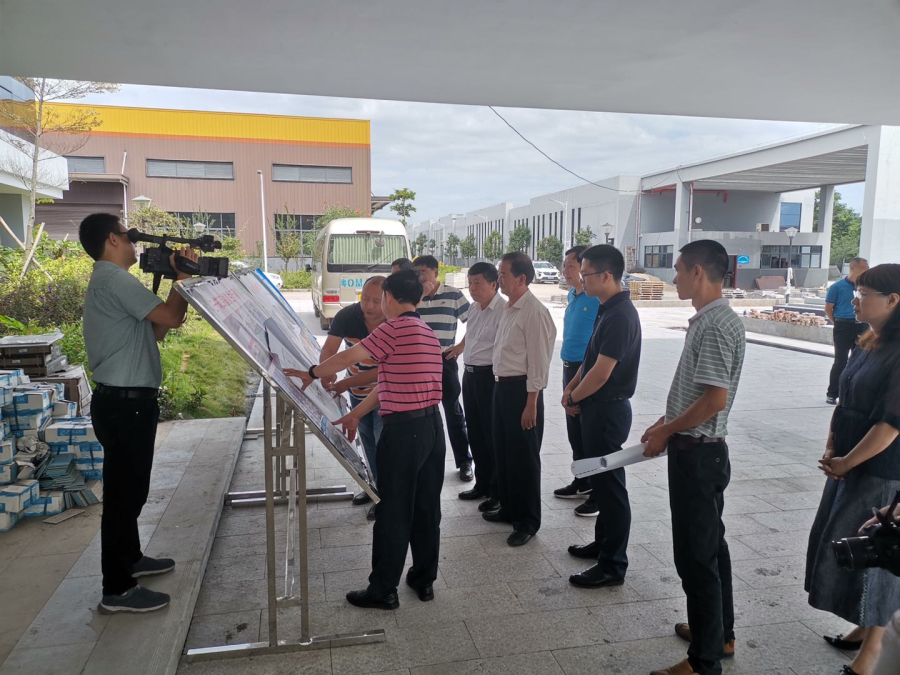 陳建青主席、宋才華書(shū)記一行領(lǐng)導(dǎo)在廣東建藝科技工業(yè)園聽(tīng)取介紹
