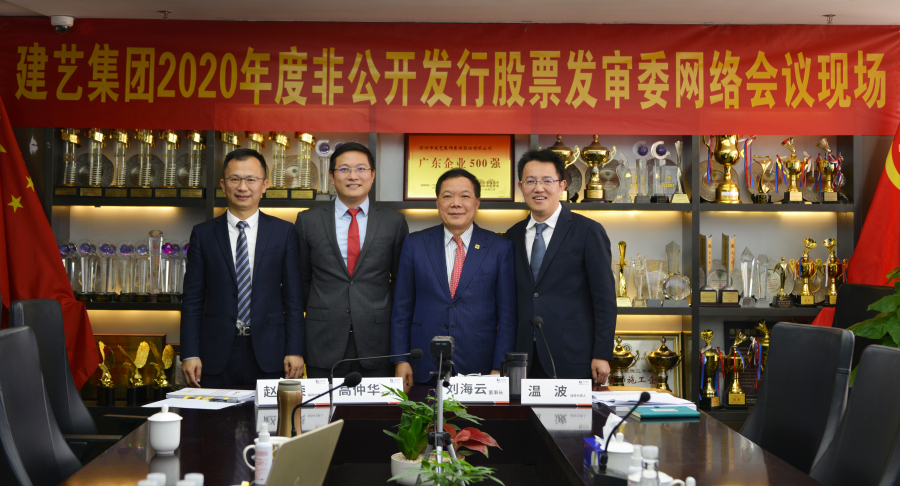 12月21日下午,建藝集團2020年度非公開發行股票申請,獲中國證券監督管理委員會第十八屆發行審核委員會179次會議審核通過!建藝集團董事長劉海云、副總裁兼董事會秘書高仲華以及保薦代表人溫波、趙桂榮,在集團總部以網絡會議形式參會。