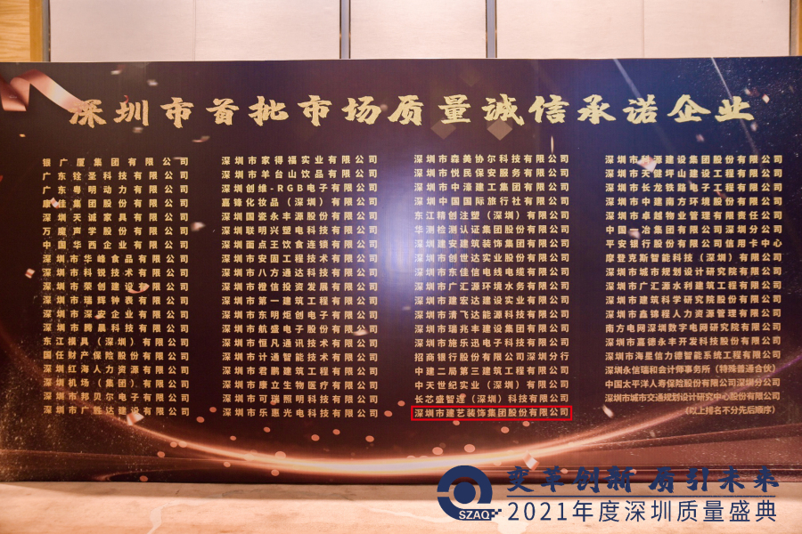 建藝集團質量誠信建設部分成果:深圳市質量強市骨干企業(yè)