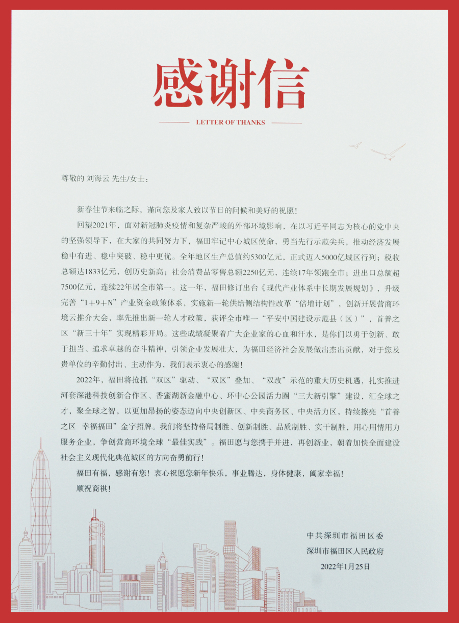 就在農歷虎年春節即將到來之際,1月28日下午,福田區委、區政府特別為區上市企業——建藝集團贈送了一份極具地方特色且洋溢著濃濃關懷溫情的特殊年禮——大盆菜及一封感謝信。以感謝在過去的一年,建藝集團為福田經濟社會發展所做出的杰出貢獻,并向集團創始人劉海云先生致以新春問候。