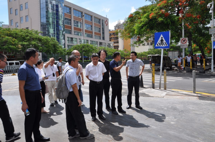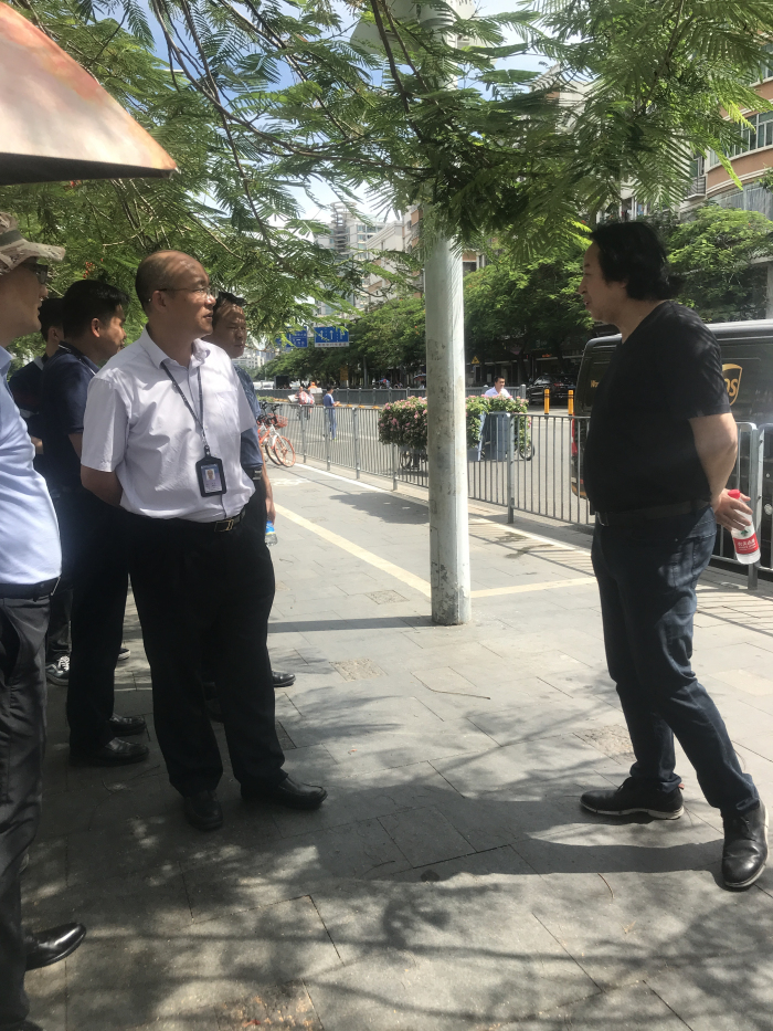 7月12日下午,市城管局副局長鄺龍桂帶隊、市環衛處副處長張建彬與南山區城管局副局長楊柱陪同參觀南山區公廁。