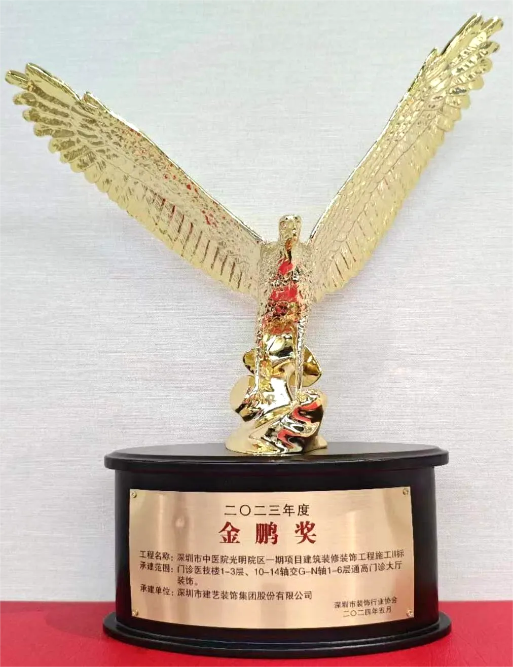 近日,由深圳市裝飾行業(yè)協(xié)會(huì)組織評(píng)選的2023年度深圳市裝飾工程“金鵬獎(jiǎng)”獲獎(jiǎng)名單揭曉,由建藝集團(tuán)承建的中山大學(xué)?深圳建設(shè)工程項(xiàng)目建筑裝修裝飾工程施工(VI標(biāo))、深圳市中醫(yī)院光明院區(qū)一期項(xiàng)目建筑裝修裝飾工程施工II標(biāo)項(xiàng)目、深圳職業(yè)技術(shù)學(xué)院留仙洞校區(qū)G棟學(xué)生宿舍建設(shè)工程項(xiàng)目裝修裝飾工程,共計(jì)3項(xiàng)工程榮獲嘉獎(jiǎng),企業(yè)的技術(shù)優(yōu)勢(shì)和施工水準(zhǔn)再獲行業(yè)肯定。