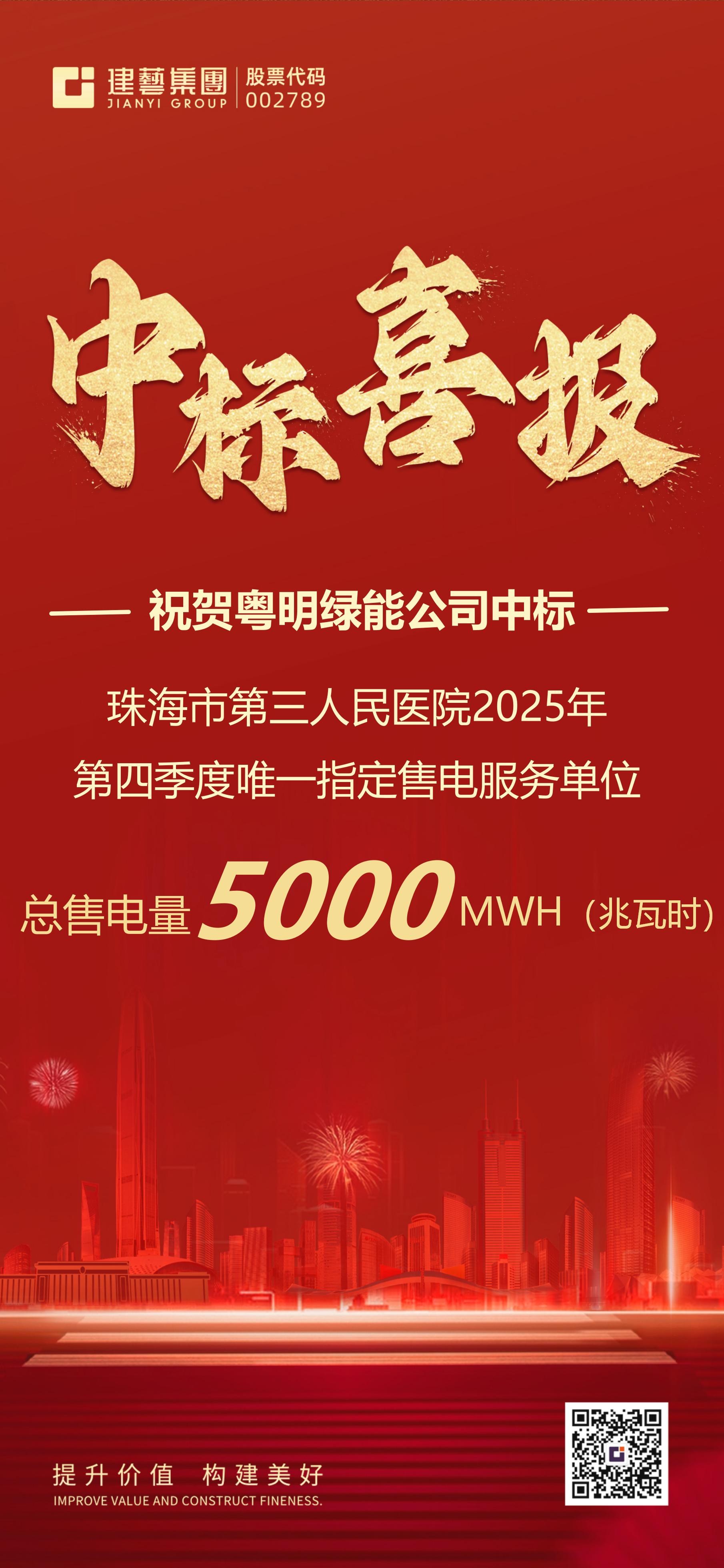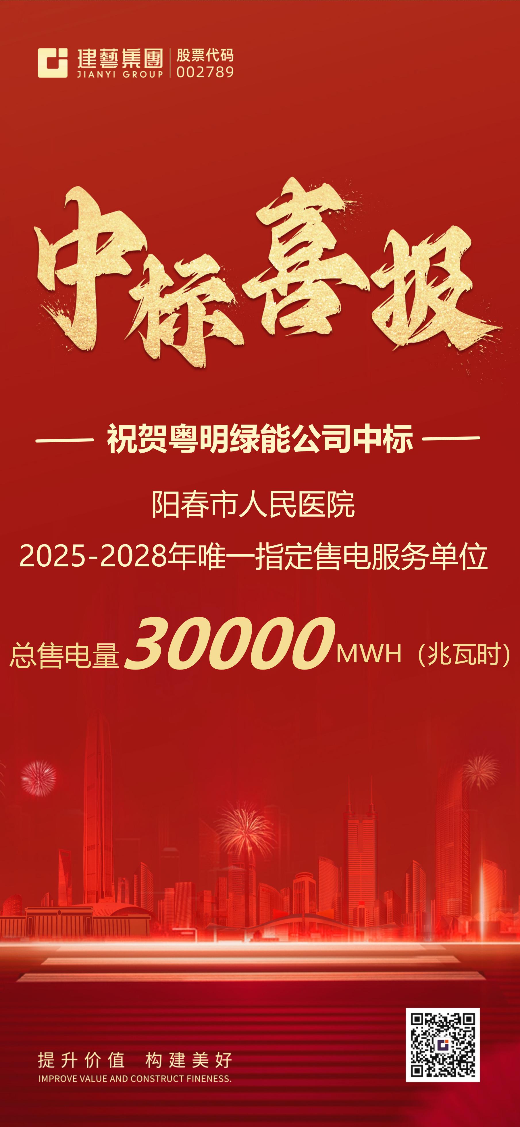 【喜報】建藝集團旗下子公司粵明綠能接連中標兩大醫院唯一指定售電服務單位,總售電量35000MWH(兆瓦時)