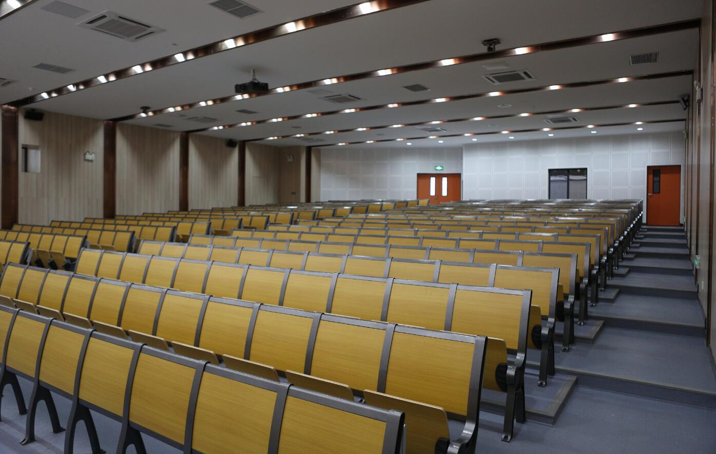 階梯教室墻面采用了槽木吸音板隔墻施工工藝,槽木吸音板解決了聲學上的諸多難題,再加上深化設計對造型的要求和改變,不僅吸音效果好、材質輕、不變型、強度高,而且做工精細、色澤優雅、外觀高檔,可以說裝飾效果極佳。另外,教學綜合樓外走廊排水口、泛水弧位等細部的處理也體現出了精細及美觀實用。