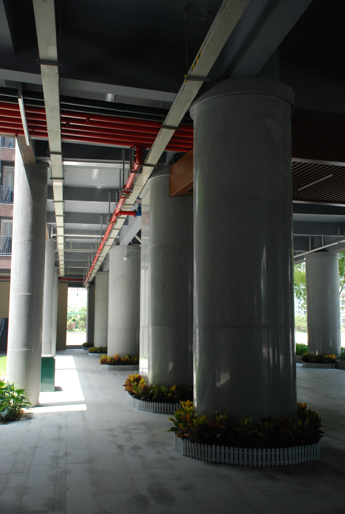 本工程主要特色與亮點是:2600平方米教學樓架空層層高5.8米,地面采用火燒面花崗石材鋪設;架空層圓柱采用花崗石石材干掛包柱飾面,且所有石材工程采用電腦排版,工廠編號加工并于工廠試拼。在無任何問題后,方運至現場組裝。在石材質量方面,建藝集團則嚴格要求石材色澤一致,表面光滑平整,接縫嚴密,不同材料銜接力求精準美觀。