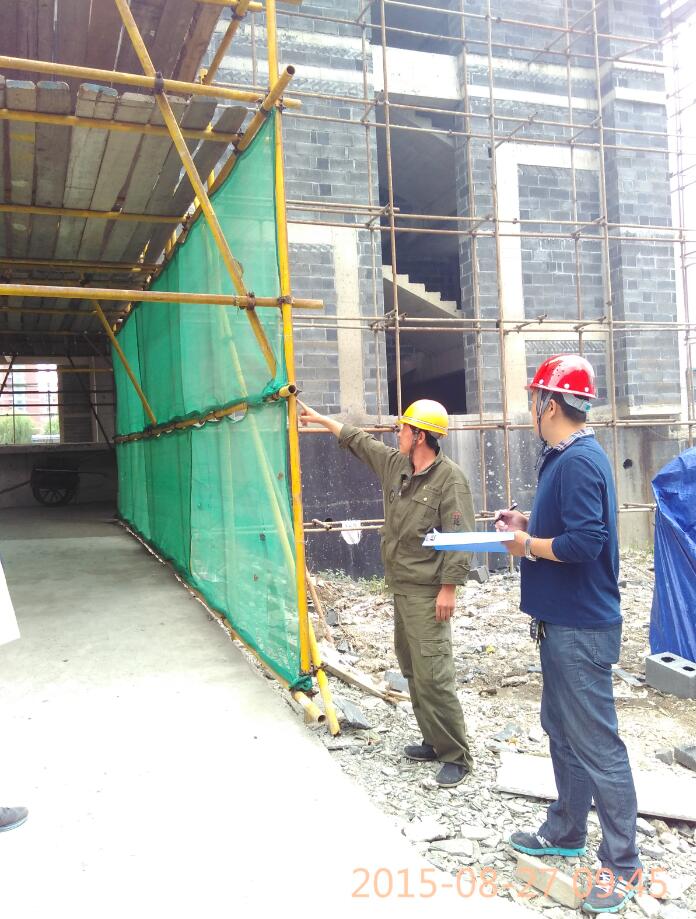 項目部人員對腳手架進(jìn)行檢查