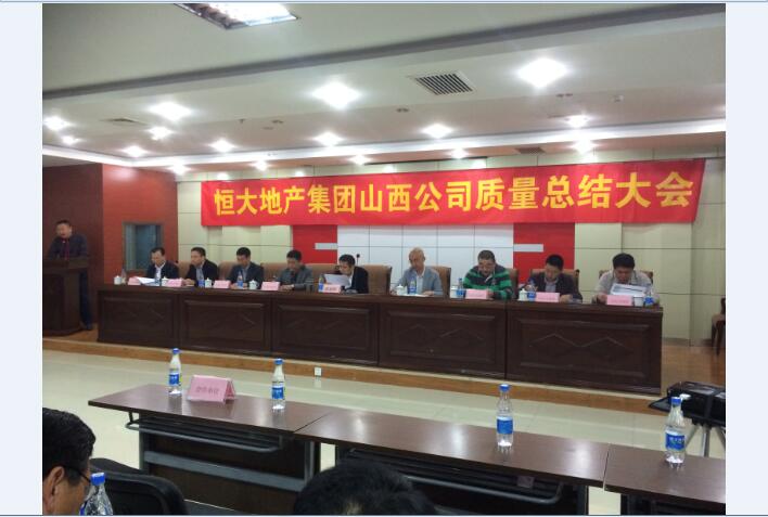 5月10日,“恒大地產山西公司2015年第一季度質量總結大會”(全國參會單位67家、人員350余人)在山西太原企聯大廈頂層大會議室舉行,建藝集團領導楊廣生、王晟應邀出席了本次會議。