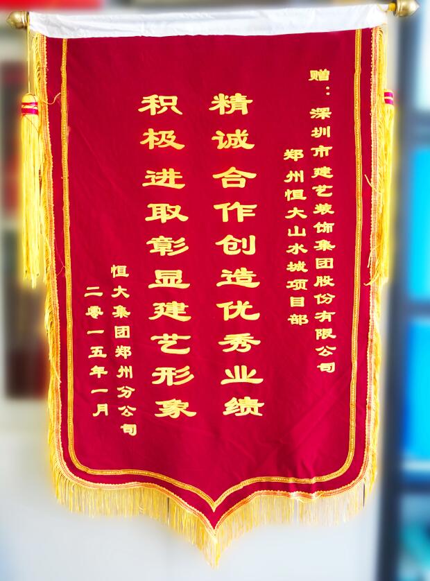 恒大集團鄭州分公司贈予建藝集團鄭州恒大山水城項目部榮譽錦旗