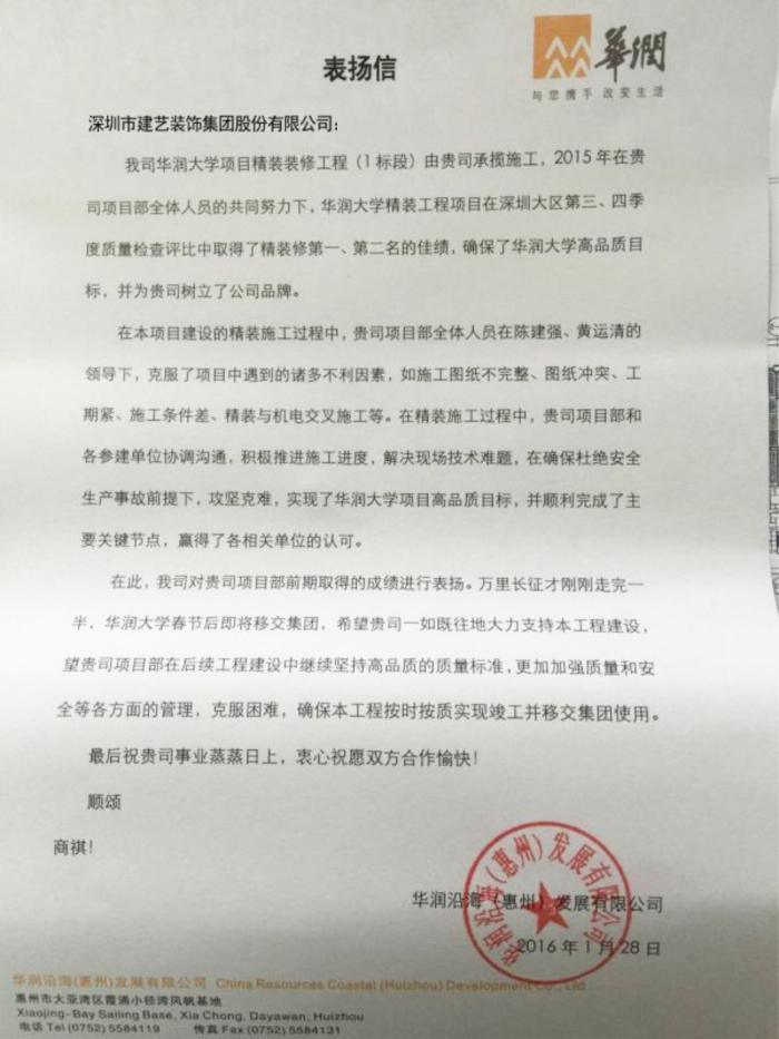 [下一篇]建藝集團(tuán)陽江恒大名都首期商業(yè)1號(hào)樓(新綜合樓9)室內(nèi)裝修工程項(xiàng)目部獲表揚(yáng)