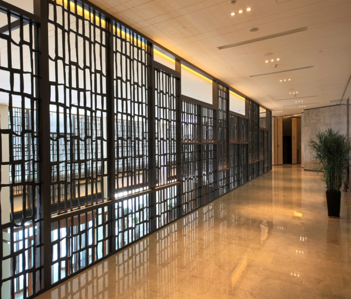 建藝集團承建了酒店大堂及公共部分的精裝修,施工范圍為1-2層公共區域、包括餐廳,酒吧,宴會廳,會議室,大廳,走廊,電梯廳。