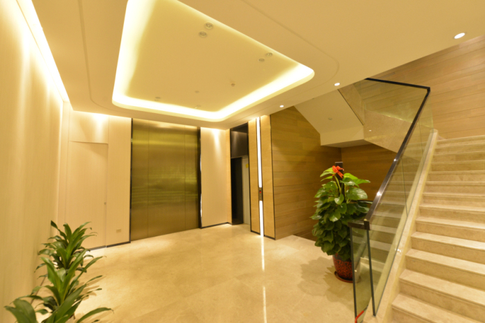 在建藝集團(tuán)項(xiàng)目人員的精心施工下,此項(xiàng)目的最終完成效果可謂是非常驚艷。前臺(tái)接待大廳全部采用西班牙米黃大理石,鑲嵌上紅色大字“華耀城”,顯得分外耀眼。為了實(shí)現(xiàn)設(shè)計(jì)要求的特殊紋路藝術(shù)效果,建藝集團(tuán)項(xiàng)目人員對(duì)墻面石材板塊進(jìn)行了人工琢打加工,使用專用于石材荔枝面處理的氣動(dòng)荔枝錘進(jìn)行敲打,精雕細(xì)琢,使原本較為光滑的雕刻面呈現(xiàn)出自然的波浪形紋路效果,每一塊石材都獨(dú)一無二。