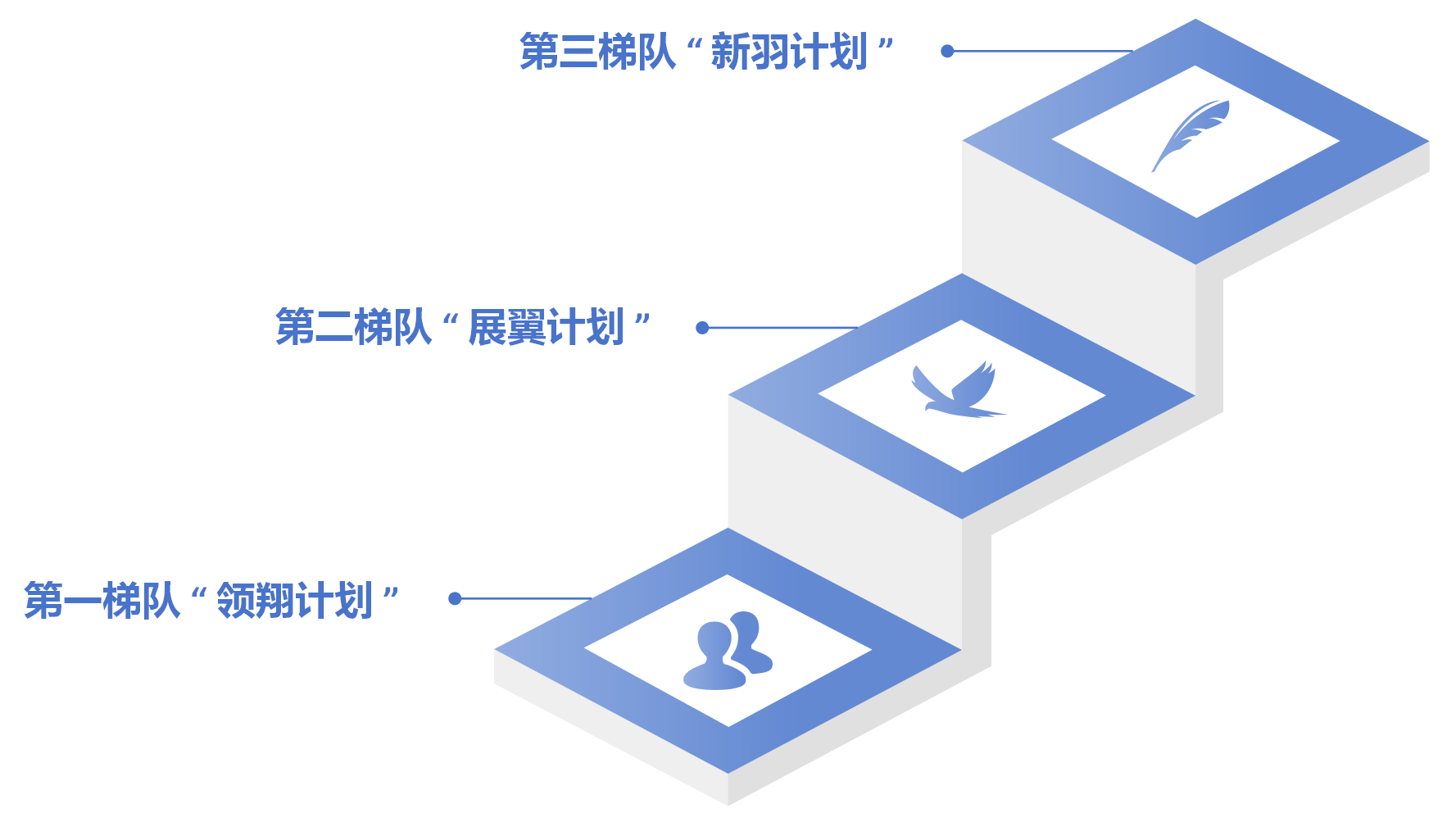 2、公司為優(yōu)化人力資源配置,充分激活隊(duì)伍活力,建立了集團(tuán)三級(jí)階梯人才庫(第一梯隊(duì) “領(lǐng)翔計(jì)劃” 、第二梯隊(duì) “展翼計(jì)劃”、第三梯隊(duì)“ 新羽計(jì)劃”),將 “能力強(qiáng)、潛力大、忠誠度高” 的員工納入集團(tuán)人才梯隊(duì)培養(yǎng)計(jì)劃,后期將采取每半年更新的動(dòng)態(tài)管理機(jī)制,即定期通過業(yè)績?cè)u(píng)估、人員評(píng)價(jià)等方式選拔或替換員工入庫或出庫。