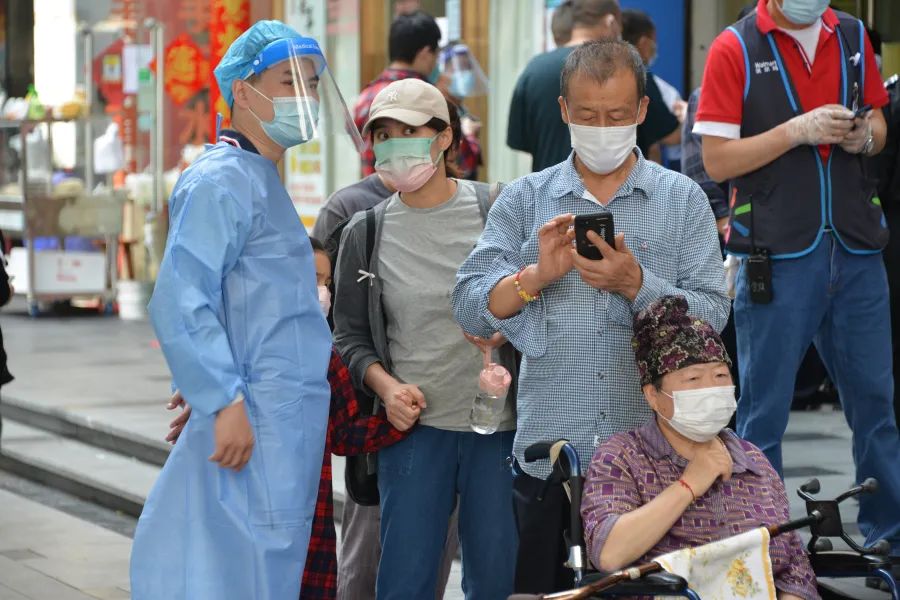 組圖:建藝志愿者在核酸檢測點為群眾提供便利