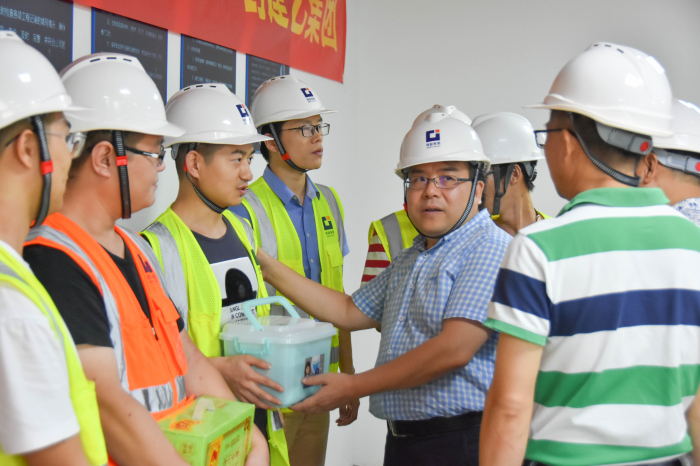 隨后,與會領導為項目一線員工派發涼茶等防暑降溫必備品及藥品等慰問品,并親切慰問了一線員工。會后,王貴斌主席和與會全體人員合影留念。