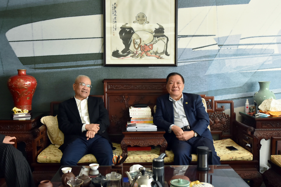 劉海云主席熱情接待張玉富董事長(zhǎng)(左)一行